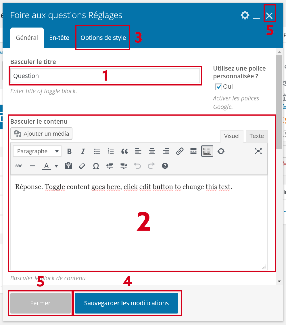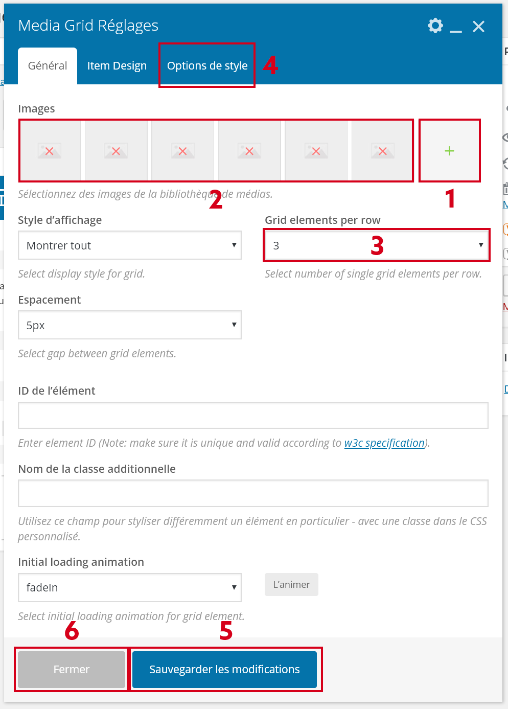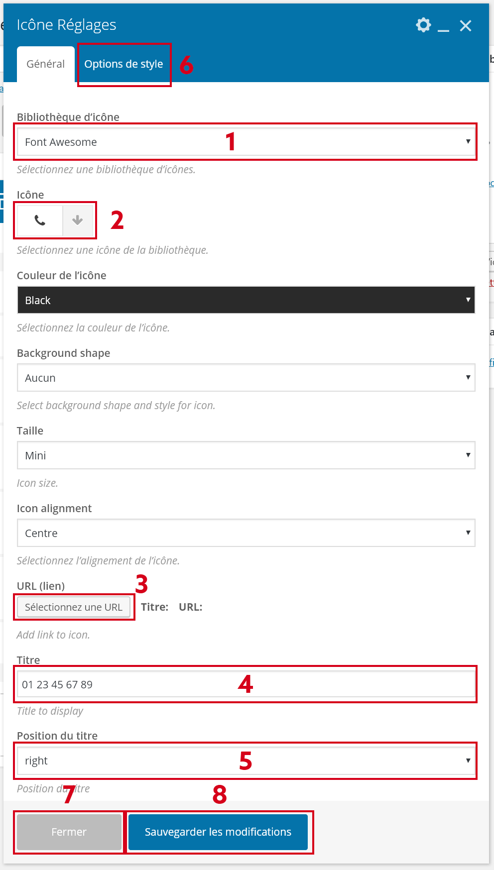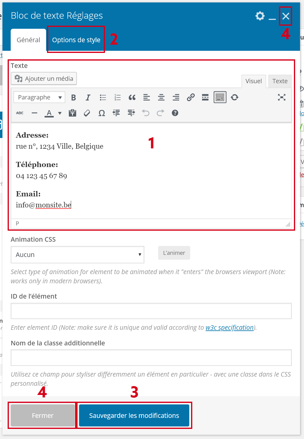 L’élément est pré-configuré mais rien ne vous empêche d’explorer les différentes options de réglage, celles-ci sont commentées.