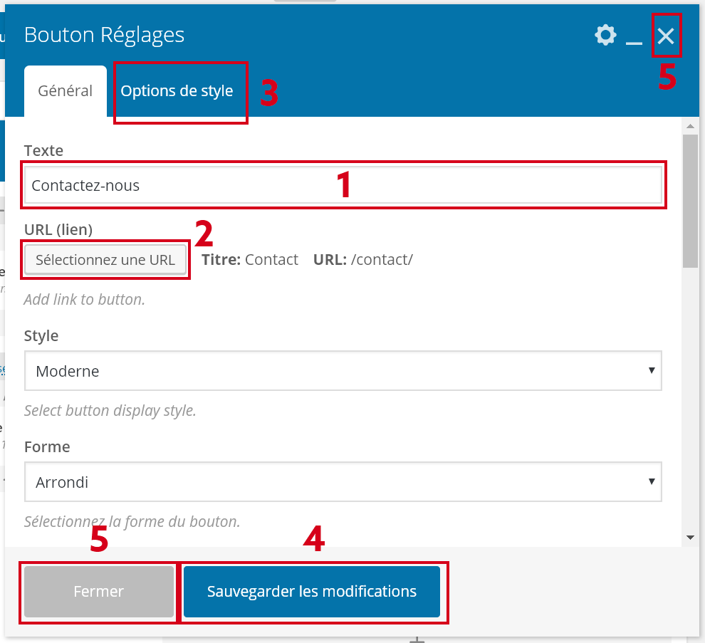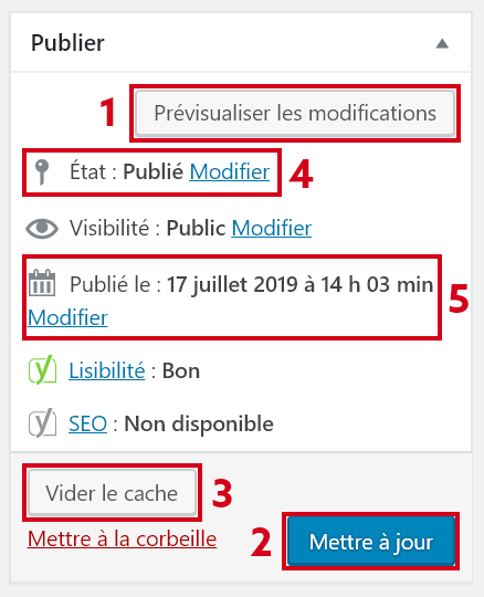 - Mettre à jour/Publier pour sauvegarder vos modifications et les mettre en ligne.