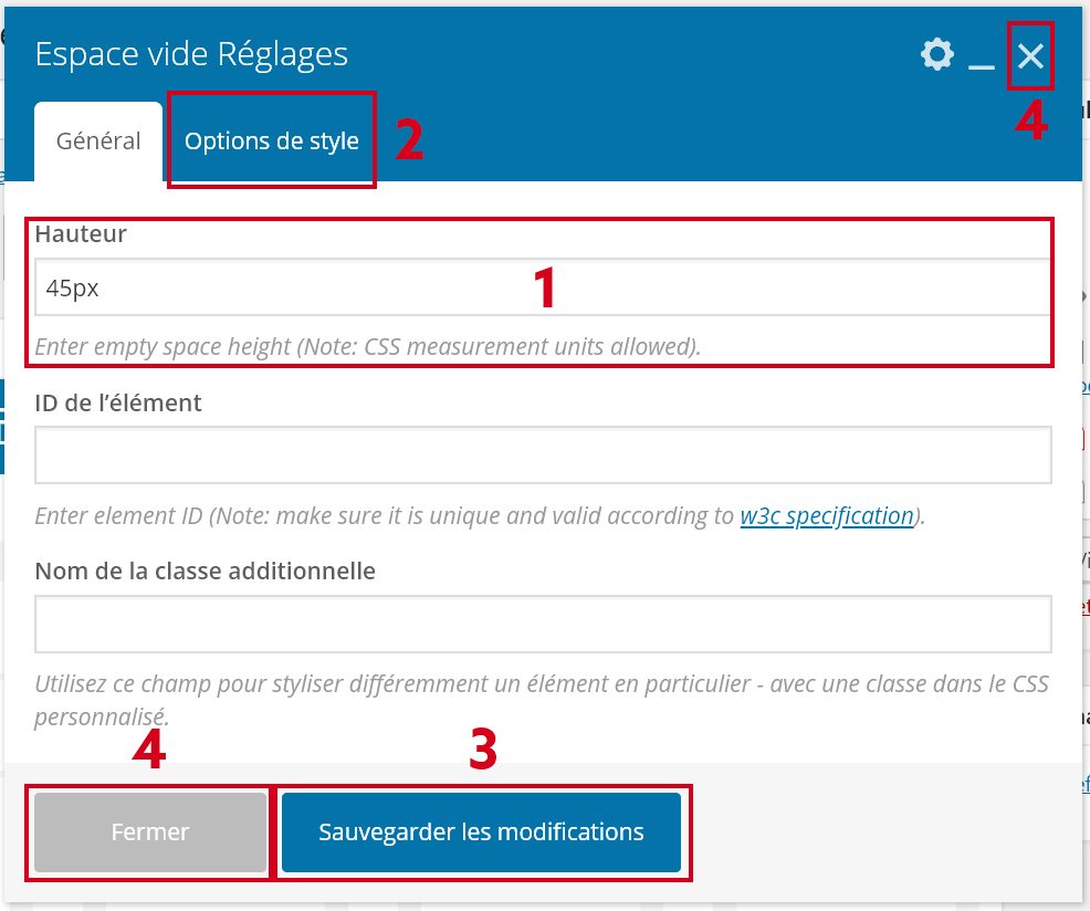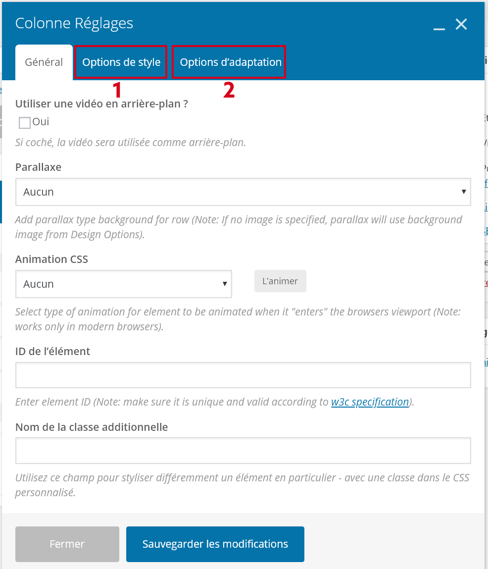 - Largeur: déterminez ici la largeur de la colonne en fonction de l’écran.
