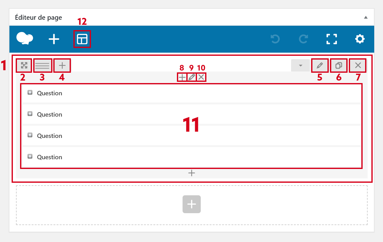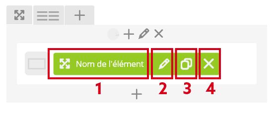 - Une rangée (structure pouvant contenir plusieurs colonnes dans lesquelles les éléments sont ajoutés).