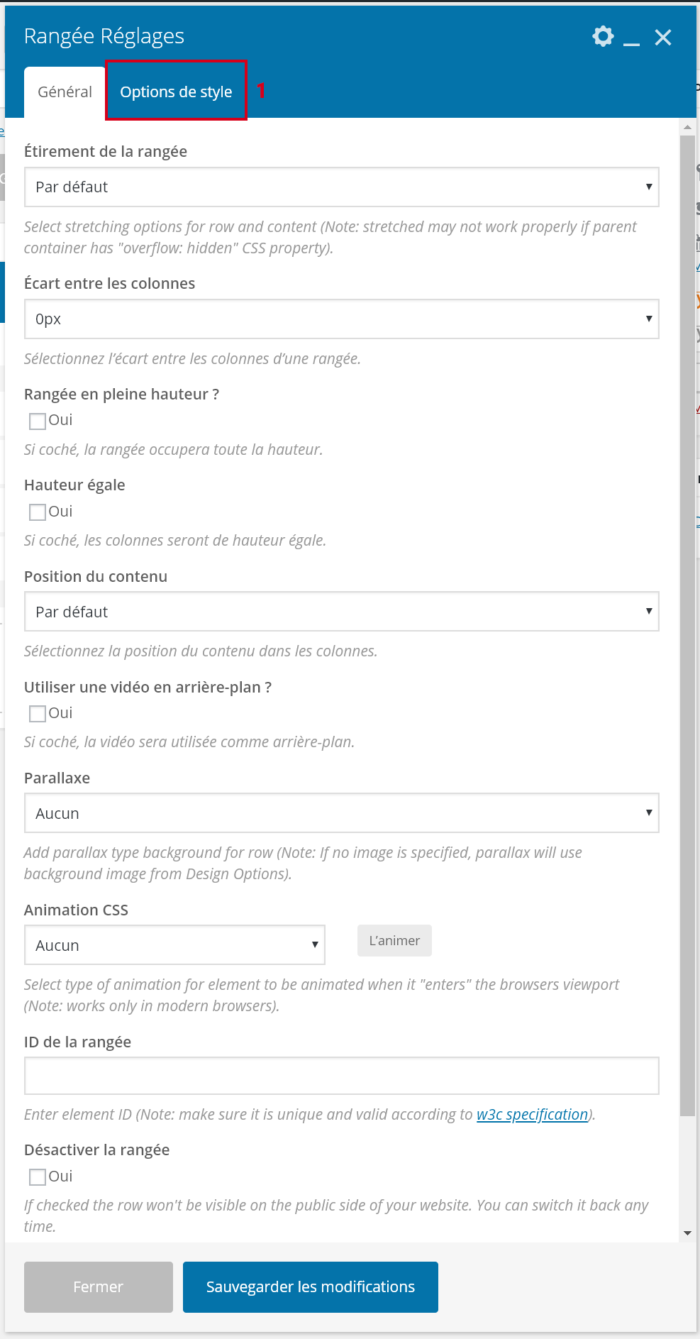 2.5.1 Les options de style (rangées, colonnes et éléments)