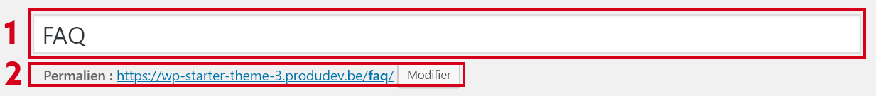 - En cliquant le bouton “modifier” à droite de l’url (permalien) vous pourrez modifier l’url de la page