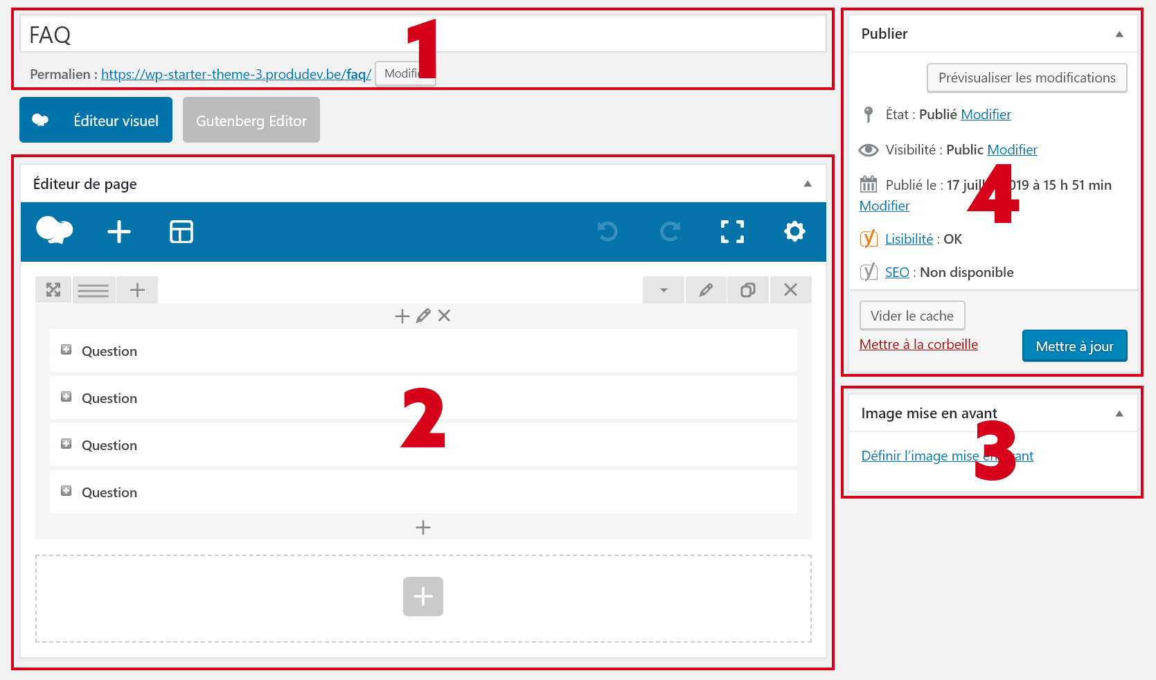 Vous arrivez maintenant sur la page d’édition, celle-ci se divise en 4 parties: