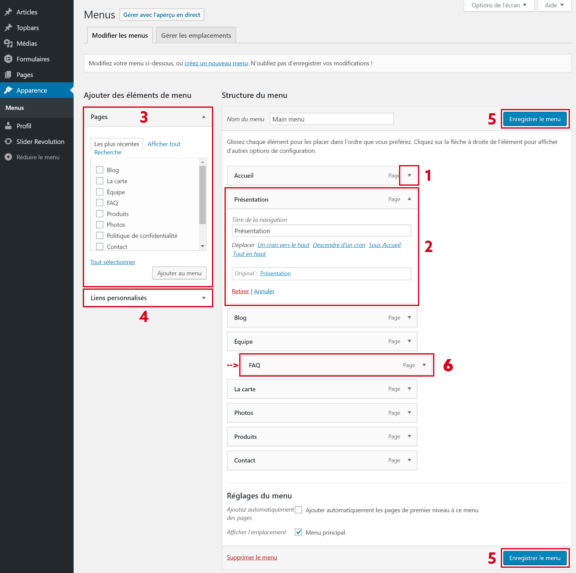 - Cliquez le bouton Enregistrer le menu pour mettre en ligne les modifications.