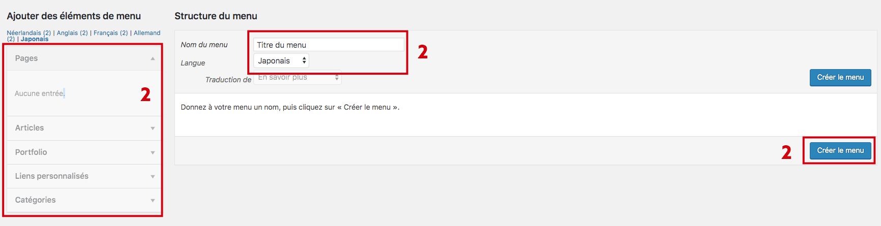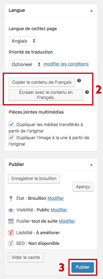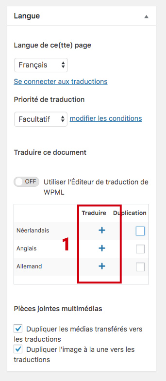 Ajouter la traduction d’un élément (articles, pages, portfolio, etc)